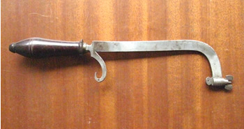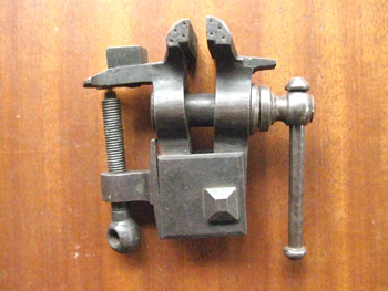The hacksaw frame and table vise were produced this way, in an 18th century style but made in the 19th century. The sugar nippers were probably made elsewhere in England, again in an 18th century style but probably dating around 1850.